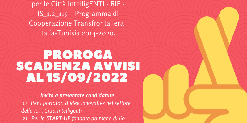 Progetto «REINVENTER Rete d’INcubatori tra l’Italia e la Tunisia per le Città IntelligENTI – RIF – IS_1.2_115 – CUP: E68H19000630007» Programma ENI di Cooperazione Transfrontaliera – Italia-Tunisia 2014-2020. Invito a presentare candidature: