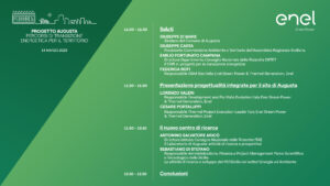 L’evento di presentazione del nuovo centro di ricerca si è tenuto presso il Palazzo della Città di Augusta alla presenta di numerosi rappresentanti istituzionali, tra gli altri il Sindaco di Augusta, Giuseppe Di Mare, il Vice Sindaco, l’Assessore Tania Patania, l’Onorevole Giuseppe Carta, Presidente Commissione Ambiente e Territorio della Regione Siciliana, Luca Solfaroli Camillocci, Responsabile Enel Green Power e Thermal Generation Italia di Enel; Emilio Fortunato Campana, direttore DIITET, Dipartimento di Ingegneria, ICT, e Tecnologie per l’Energia e i Trasporti del CNR; Rosario Minasola Presidente del Parco Scientifico e Tecnologico della Sicilia.